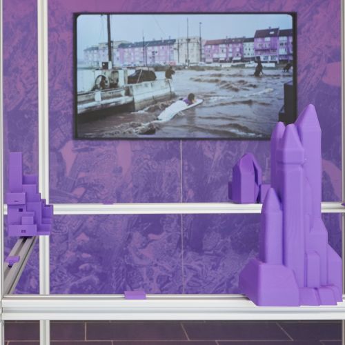 Voir l'œuvrePour Un Été Au Havre, Isabelle Cornaro poursuit ses réflexions sur les objets et leur image, sur la notion d'original et de copie.